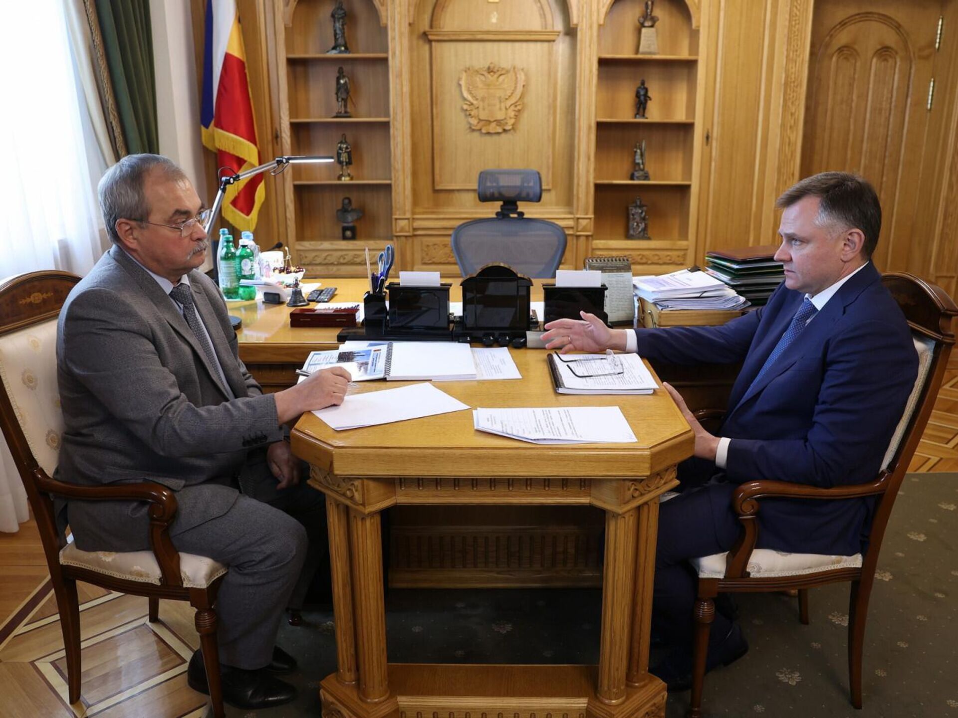 Врио губернатора Ростовской области Юрий Слюсарь провел рабочую встречу с главой Шолоховского района Олегом Дельновым. Основной темой обсуждения стали вопросы,... Российское казачество, 17.07.2025