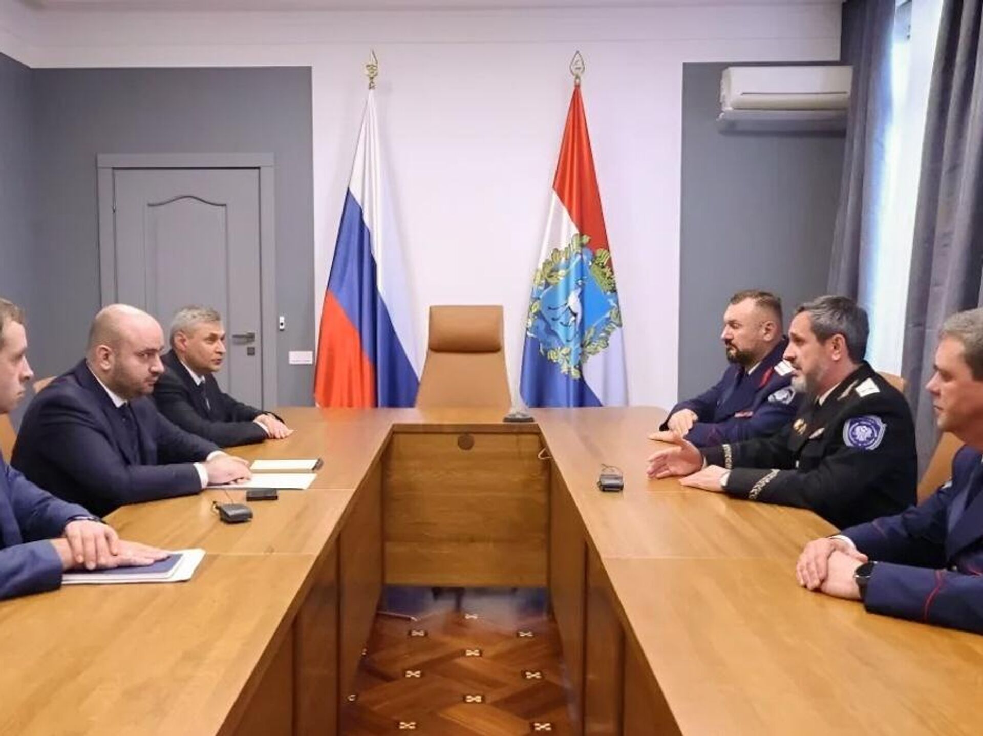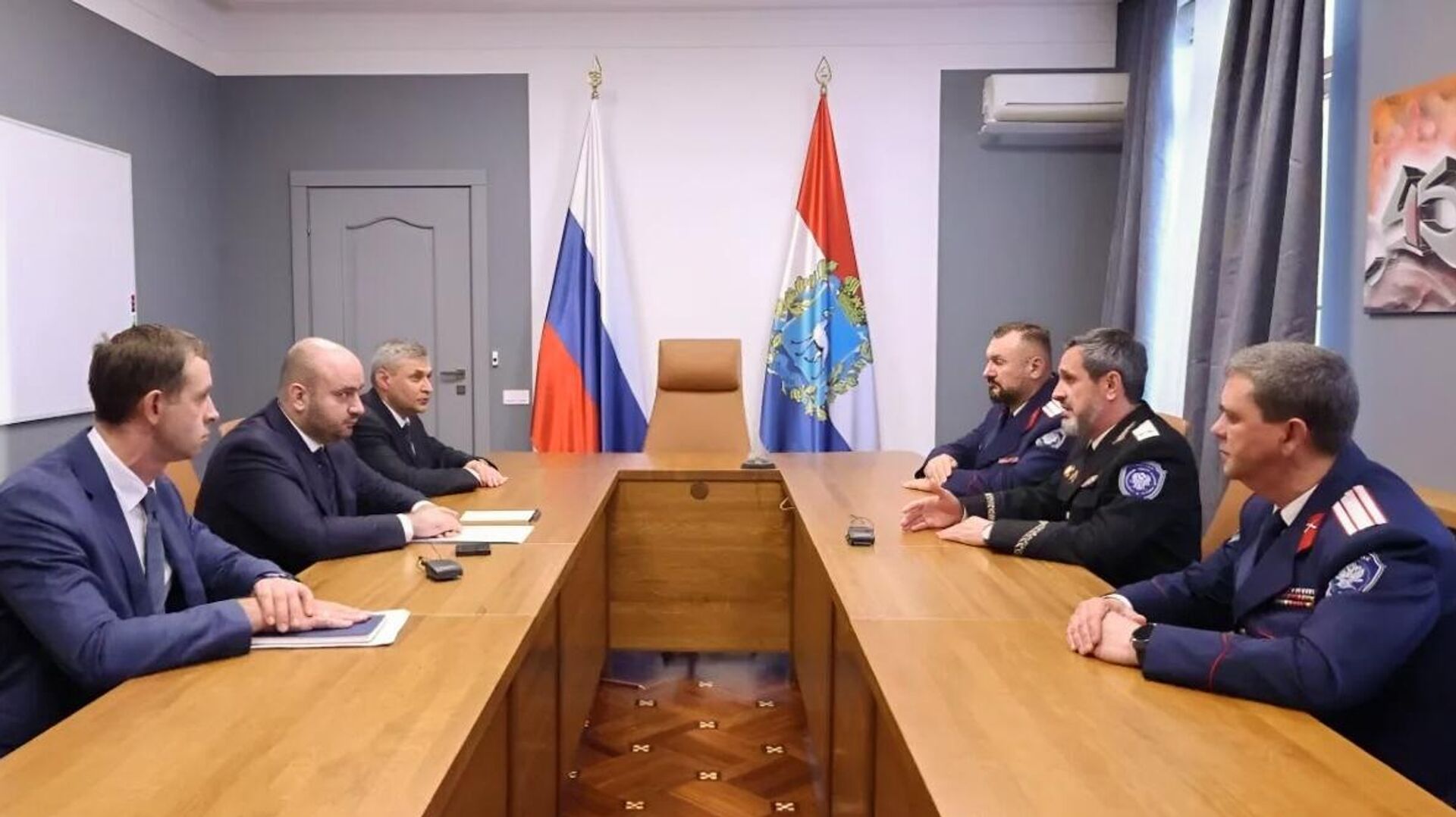 © Волжское Войсковое Казачье обществоВстреча губернатора Самарской области Вячеслава Федорищева с атаманом Всероссийского казачьего общества Виталием Кузнецовым