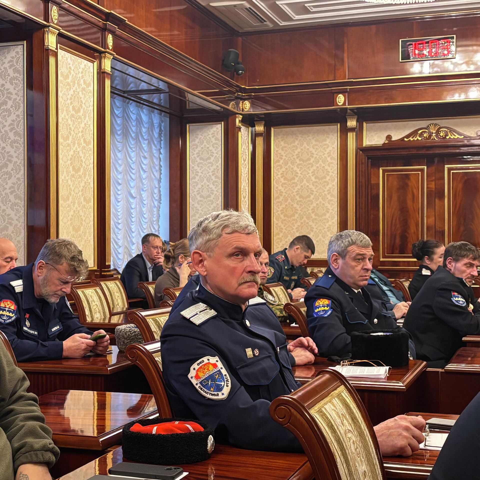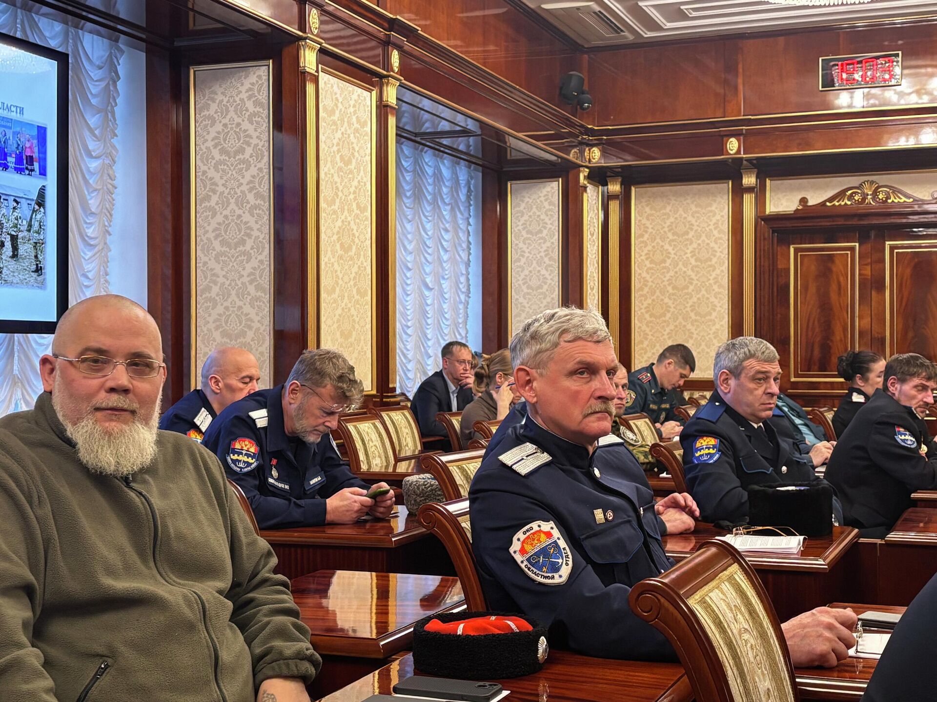 В ходе встречи с докладом выступил атаман Северо-Западного войскового казачьего общества Максим Буга.