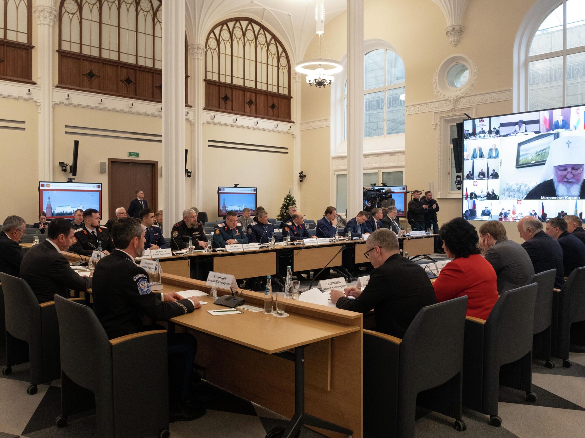 С приветственным словом к участникам заседания обратился председатель Синодального комитета Русской православной церкви по взаимодействию с казачеством митрополит Ставропольский и Невинномысский Кирилл. Митрополит особо отметил работу священнослужителей, которые несут службу в зоне проведения СВО, и напомнил о задачах церкви.