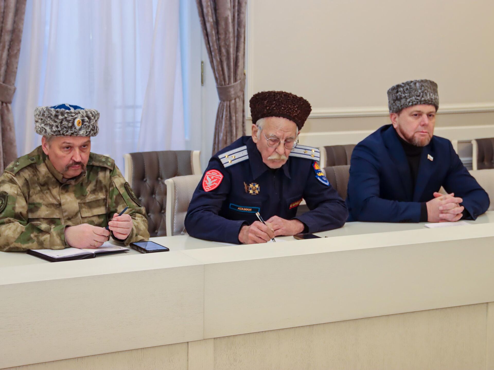На встрече обсудили задачи в рамках Стратегии государственной политики РФ в отношении российского казачества на 2021–2030 годы, рассмотрели вопросы взаимодействия казачьих обществ с исполнительными органами государственной власти, а также участие казаков в укреплении межнациональных отношений.