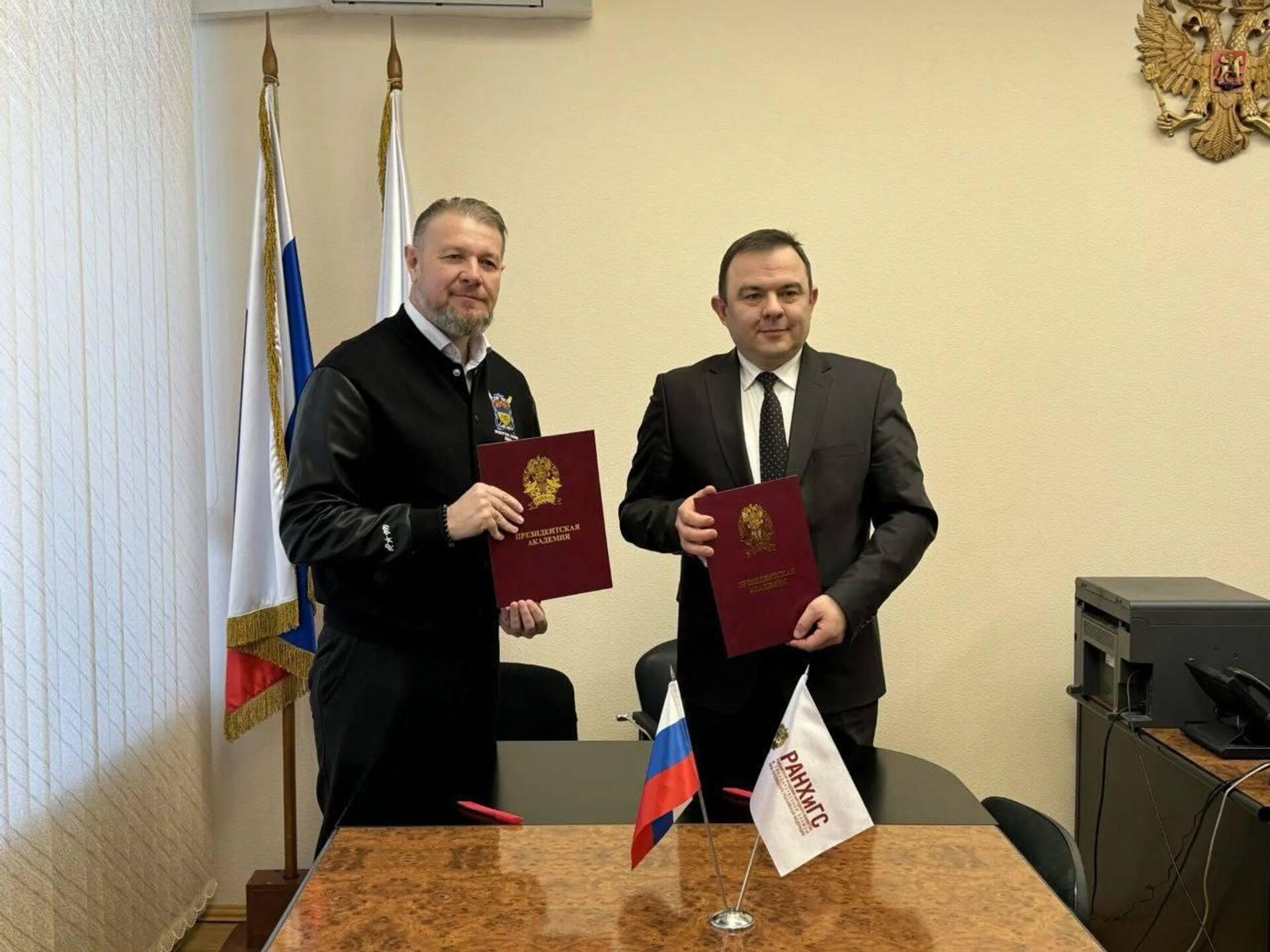 Атаман Оренбургского войскового казачьего общества Игорь Цыганов и директор Челябинского филиала РАНХиГС Евгений Алдошенко подписали соглашение о сотрудничестве,